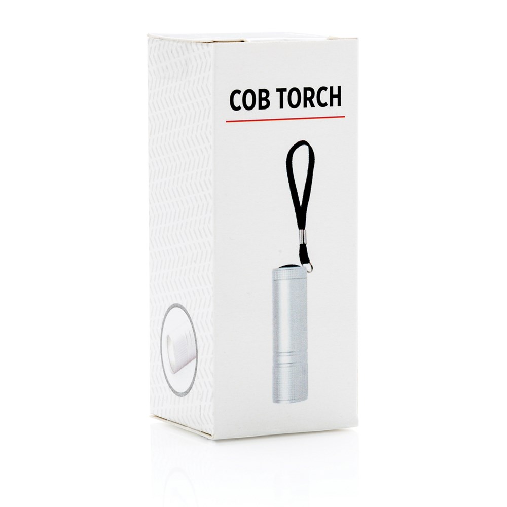 Superhelle COB-Leuchte im Taschenformat. COB ist heller ist das althergebrachte LED und benötigt dabei noch weniger Energie - kann somit bis zu 30% länger leuchten. Aluminiumgehäuse mit Trageriemen. Inkl. 3xAAA-Batterien