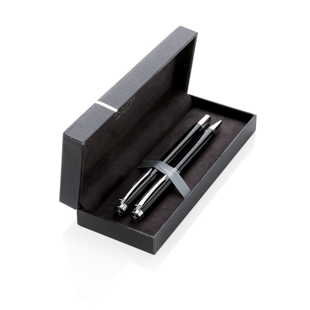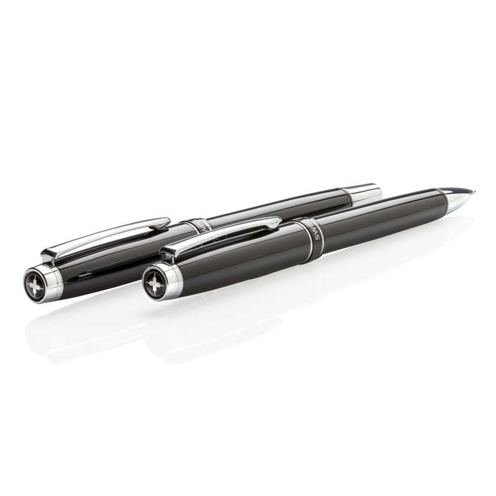 Die Swiss Peak Herritage Kollektion steht für moderne Eleganz. Luxuriöser Messing Kugelschreiber und Rollerball verpackt in einer Swiss Peak Geschenkbox. Beide Stifte mit Metallmine mit je 1200m blauschreibender, deutscher Tinte.