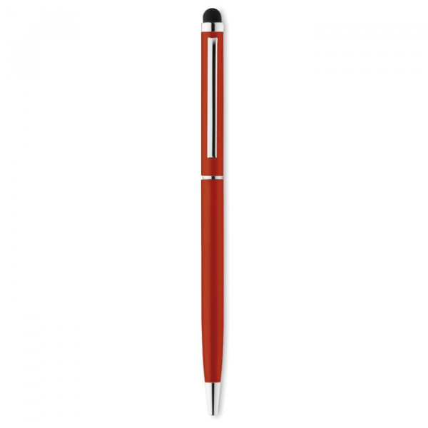 Drehkugelschreiber mit Stylus aus recyceltem Aluminium. Mit verchromtem Clip. Blaue Tinte. mehr