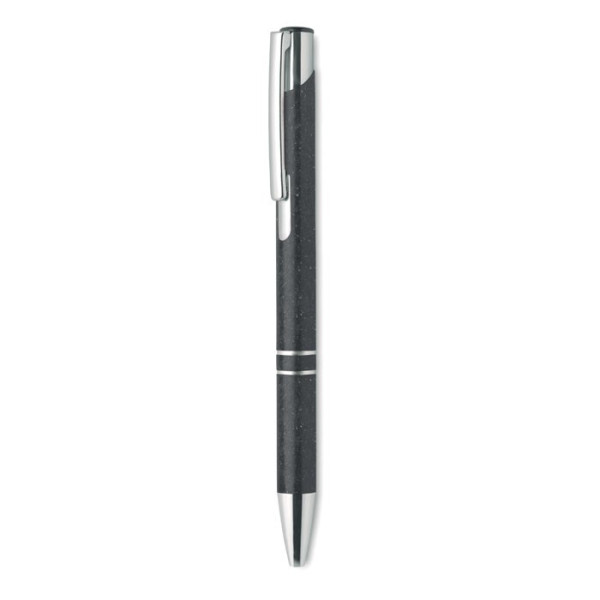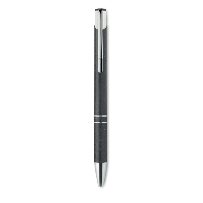 Druckkugelschreiber aus 50% Weizenstroh und 50% ABS-Material mit silbernen Details. Blaue Tinte.