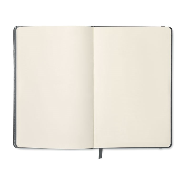 DIN A5 Notizbuch mit gebundenem Hard-Cover aus PU. 96 Blatt (192 Seiten) recyceltes Blankopapier. Elastisches Verschlussband und Lesebändchen. FSC®-certified | FSC MIX CREDIT, P7.1, FSC-C213206