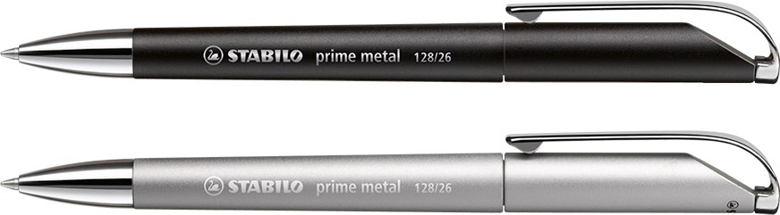 HEAVY METAL FÜR DEN SCHREIBTISCH. Drehkugelschreiber mit anodisiertem Aluminiumschaft. In Silber oder Schwarz, matt satiniert und hochglänzenden Beschlägen.