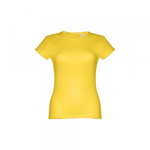 Damen T-shirt aus Strickjersey und 100% Baumwolle (150 g/m²), kurzarm mit kardiertem Baumwollfaden. Bei der Farbe 183 bestehend aus 90% Baumwolle und 10% Viskose. Schmaler Jersey-Kragen mit Satin-Verstärkungsband. Doppelnaht an Ärmeln und Saum. Tailliert. Größe: 3XL