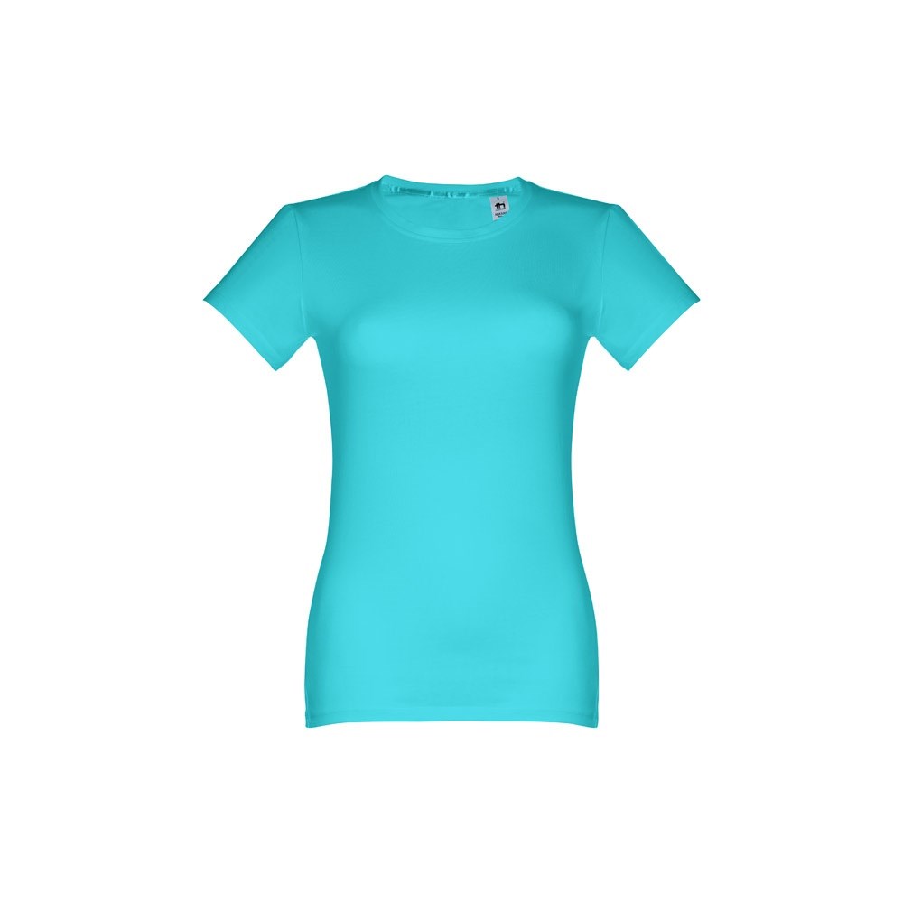 Damen T-shirt aus 100% Strickjersey und Baumwolle (190g/m²) mit kardiertem Baumwollfaden, tailliert. Diese hat einen dünnen Jersey-Kragen mit Satin-Verstärkungsband und Doppelnaht an Ärmeln und Saum. Bei der Farbe 183 bestehend aus 90% Baumwolle und 10% Viskose. Größen: S, M, L, XL, XXL