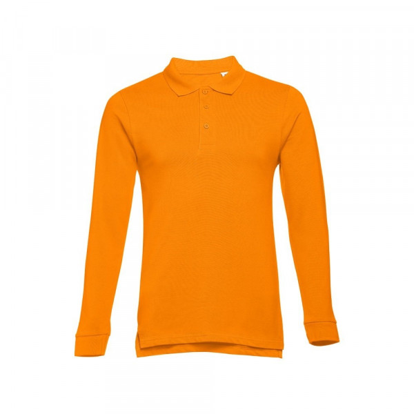 Herren Poloshirt aus Piqué Stoff 100% kardierter Baumwolle (210 g/m²), langarm. Bei der Farbe 183 bestehend aus 85% Baumwolle und 15% Viskose. Gerippter Kragen und Ärmelbund. Verstärkungsband am Kragen und verstärkte Knopfleiste mit 3 farblich abgestimmten Knöpfen und einem Ersatzknopf an der Innennaht. Unten mit seitlichen Öffnungen. Größe: 3XL