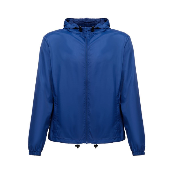 Wasserdichte Windjacke (Unisex) aus 100% recyceltem Nylontaftgewebe (65 g/m²). Vordere Öffnung mit YKK®-Reißverschluss - eine Marke, die moderne Ausrüstung und hohe Qualitätskontrolle verwendet. Die Kapuze ist mit Mesh bezogen und hat Kordelzüge zum Zuziehen. Sie hat Ösen für eine gute Belüftung, einen elastischen Verschluss mit Stoppern am Saum und Seitentaschen mit Reißverschluss. Größen: XS, S, M, L, XL, XXL