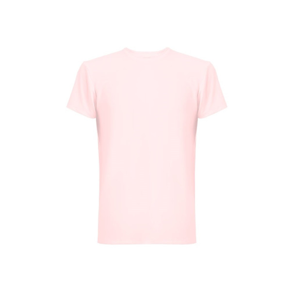 T-Shirt aus Jersey (190 g/m²), bestehend aus 90 % Polyester und 10 % Elastan. Mit 1x1-Rippstrickkragen. Doppelnähte an Ärmeln und Saum. Lieferung in einer Papprolle. Größen: XS, S, M, L, XL