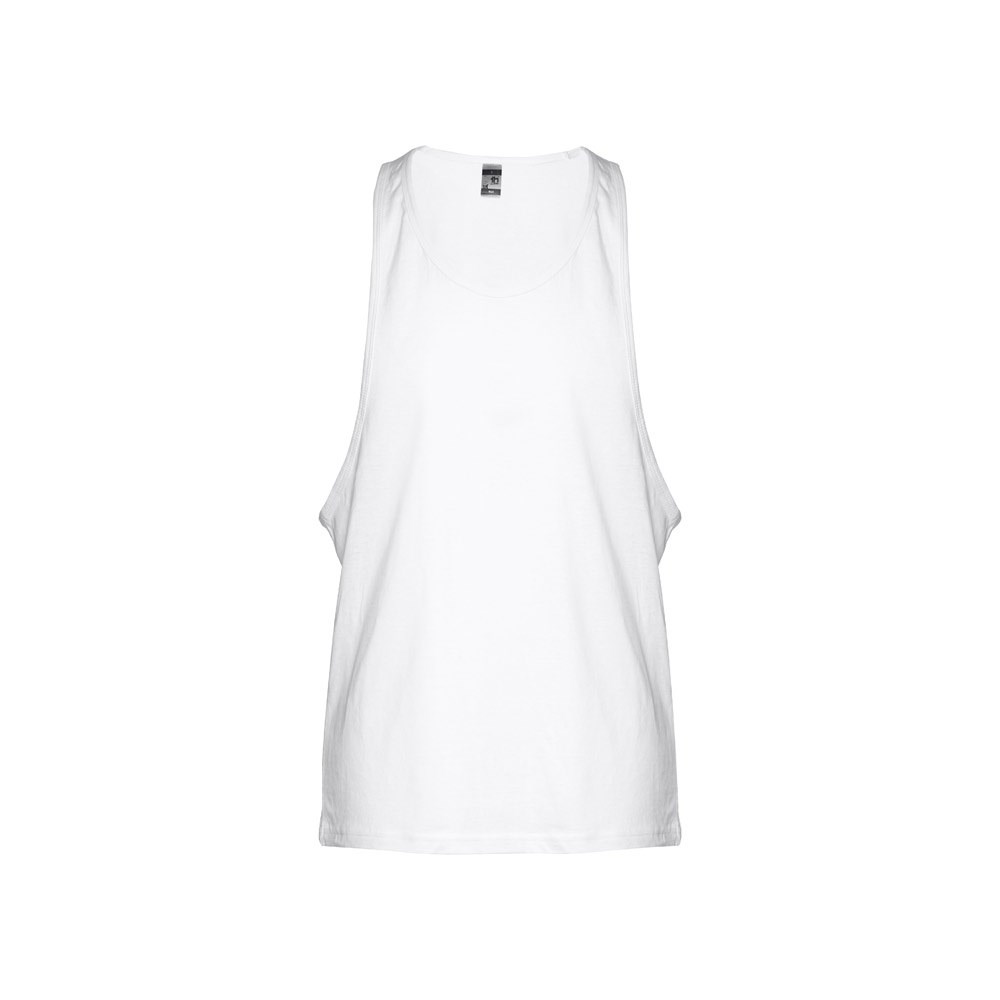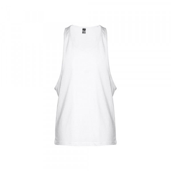 Herren Achselshirt aus 100% Strickjersey und Baumwolle (140g/m²) mit kardiertem Baumwollfaden, breite Armlöcher, Rundhalsausschnitt und Doppelnaht am Saum. Größen: XS, S, M, L, XL, XXL