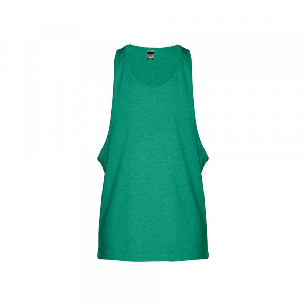100% gekaard katoenen jersey zonder mouwen voor heren (140 g/m²). Brede armsgaten en ronde kraag, met bias tape op de armsgaten en halslijn. Gesneden en genaaid stuk met dubbele naad aan de onderkant. Maten: XS, S, M, L, XL, XXL