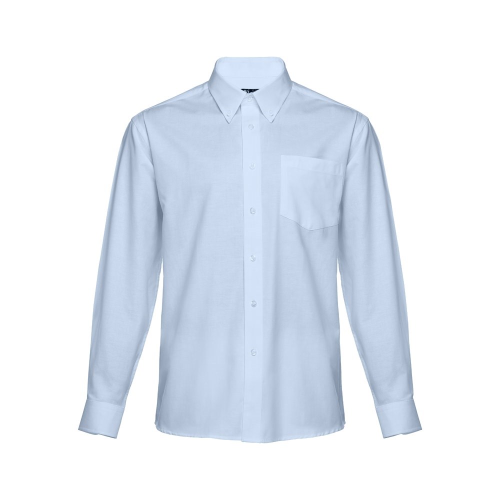 Herren langarm Oxford Hemd aus 70% Baumwolle und 30% Polyester (130g/m²) mit einer Brusttasche auf der linken Seite, einem Kragen mit zwei Knöpfen, verstellbare Manschetten mit 2 Knöpfen und einer Knopfleiste mit 7 farblich abgestimmten Knöpfen. Größen: S, M, L, XL, XXL