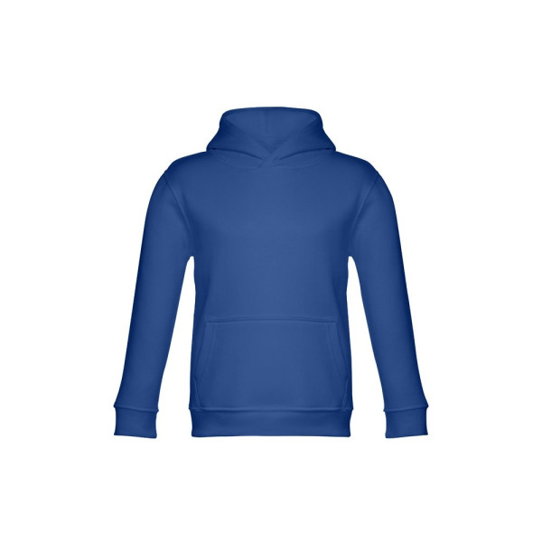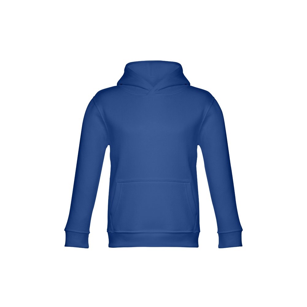 Kinder Sweatshirt aus 50% Baumwolle und 50% Polyester (320g/m²), unisex mit Kapuze in Jersey. Innen kardiert, Ripp 1x1 an Ärmelbündchen und Bund und einer Kängurutasche. Kapuze in Übereinstimmung mit den Sicherheitsstandards der Europäischen Union. Größen: 2, 4, 6, 8, 10, 12