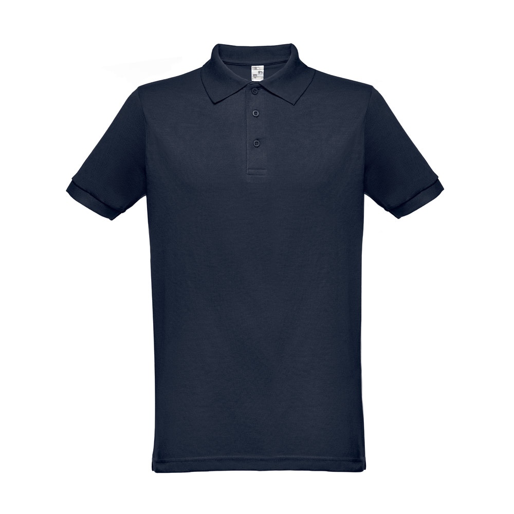 Herren Poloshirt aus Piqué Stoff 65% Polyester und 35% kardierter Baumwolle (200g/m²) mit geripptem Kragen und Ärmeln, Verstärkungsband am Kragen, verstärkte Knopfleiste mit 3 farblich abgestimmten Knöpfen und einem Ersatzknopf an der Innennaht. Bei der Farbe 183 bestehend aus 85% Baumwolle und 15% Viskose. Größen: XS, S, M, L, XL, XXL