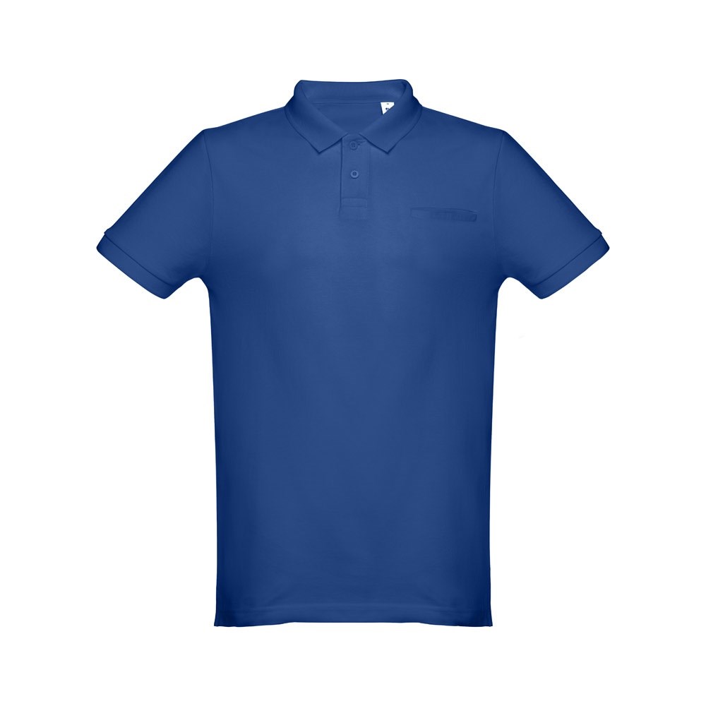 Herren Poloshirt aus Piqué Stoff 100% kardierter Baumwolle (195g/m²). Mit geripptem Kragen und Ärmelbündchen, einem Verstärkungsband am Kragen, verstärkte Knopfleiste mit 2 farblich abgestimmten Knöpfen und einem Ersatzknopf an der Innennaht. Unten mit seitlichen Öffnungen. Paspeltasche auf der Brust. Bei der Farbe 183 bestehend aus 85% Baumwolle und 15% Viskose. Größen: S, M, L, XL, XXL