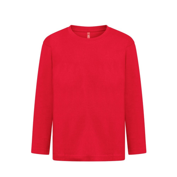 Langarm Oberteil (150 g/m²) mit enzymatischer Behandlung, für Kinder aus Jersey-Stoff (100% Baumwolle aus nachhaltigem Anbau). Kragen aus 1x1-Rippe mit Verstärkungsband aus Jersey. Schlauchförmiges T-Shirt mit regelmäßigem Schnitt und doppelten Nähten an den Ärmeln und am Saum. Größen: 2, 4, 6, 8, 10, 12