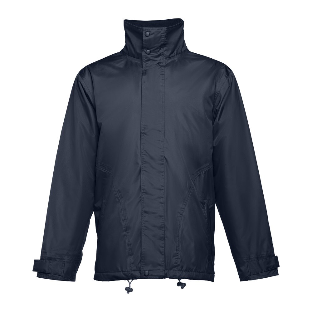 Parka aus 100% Polyester, gepolstert - Aussenseite (240g/m²) aus 100% Polyester-Pongee 240 und wasserdichter PVC-Beschichtung, Innenseite (65g/m²) aus 100% Polyester-Taft, Füllung aus 100% Polyester (80g/m²). Der Parka hat einen mit schwarz ausgekleideten Polarkragen, der mit einem Klettverschluss schliessbar ist. Die Kapuze ist faltbar und somit leicht im Kragen zu verstauen. Die Schnurbänder mit schwarzem Stopper am Kragen und an der Jackenunterseite ermöglichen eine korrekte Anpassung. Der Reissverschluss hat eine Klettverschlussabdeckung, die zusätzlich mittels Druckknöpfen geschlossen werden kann. 2 Außentaschen mit Abdeckung und 2 Innentaschen mit Klettverschluss. Mit geripptem Innenbund in 2x2, verstellbarem Ärmelbund ebenfalls mit Klettverschluss. Der Reißverschlusszugang auf der Rückseite vereinfacht die Veredelung. Größen: XS, S, M, L, XL, XXL