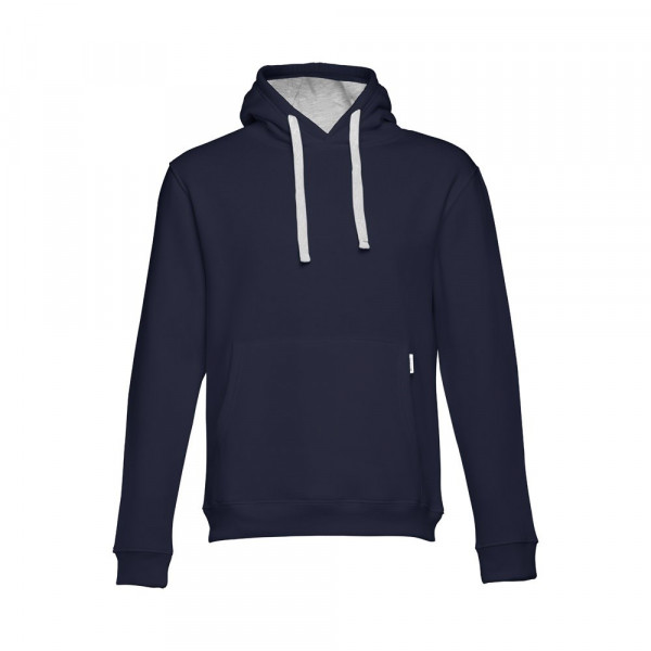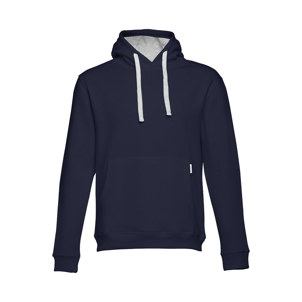 Sweatshirt aus 50% Baumwolle und 50% Polyester (320g/m²), unisex. Von innen kardiert mit einer Kängurutasche und Ripp 1x1 an Ärmelbündchen und Bund. Kapuze mit farblichem Kordelzug. Größen: S, M, L, XL, XXL