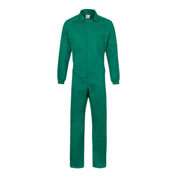 Arbeitsanzug (200g/m²), in Baumwolle (35%) und Polyester (65%). Mit asymmetrischem Zentralreißverschluss mit Doppelschieber. Gummizug in der Taille, Rippenbündchen. Mit fünf Taschen (1 Brusttasche, 2 Untertaschen, 1 Gesäßtasche und 1 Tasche am rechten Bein. Größe: 48, 50, 52, 54, 56, 58, 60, 62, 64, 66, 68, 70, 72
