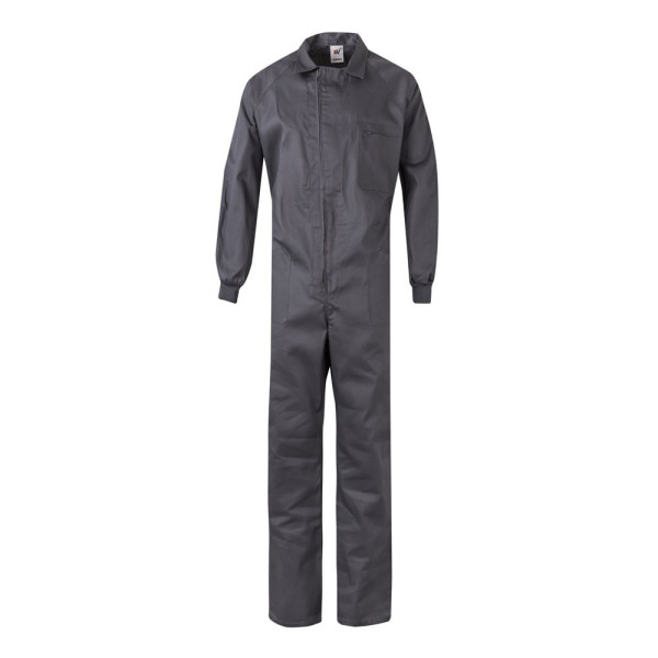 Arbeitsanzug (200g/m²), in Baumwolle (35%) und Polyester (65%). Mit asymmetrischem Zentralreißverschluss mit Doppelschieber. Gummizug in der Taille, Rippenbündchen. Mit fünf Taschen (1 Brusttasche, 2 Untertaschen, 1 Gesäßtasche und 1 Tasche am rechten Bein. Größe: 48, 50, 52, 54, 56, 58, 60, 62, 64, 66, 68, 70, 72