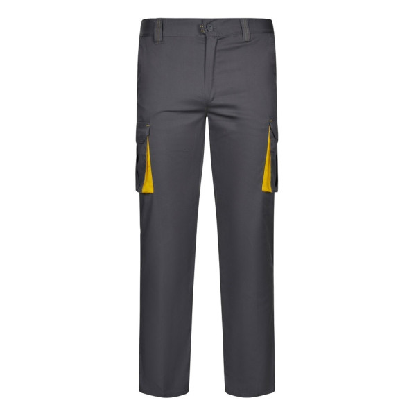 VL FIDES. Zweifarbige Stretch-Hose mit mehreren Taschen (240 g/m²), aus Baumwolle (46 %), EME (38 %) und Polyester (16 %)