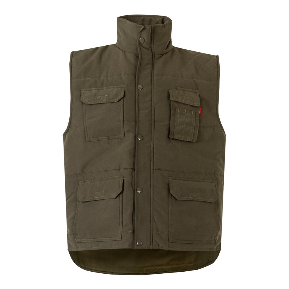Steppweste mit mehreren Taschen (220 g/m²), aus Polyester (100%). Verdeckter Reißverschluss mit Knopfleiste. Elastischer Seitenbund und Windfang im Armausschnitt. Mit sieben Taschen (1 Brusttasche, 2 Untertaschen, 2 Seitentaschen und 1 Brusttasche). Größe: S, M, L, XL, 2XL, 3XL