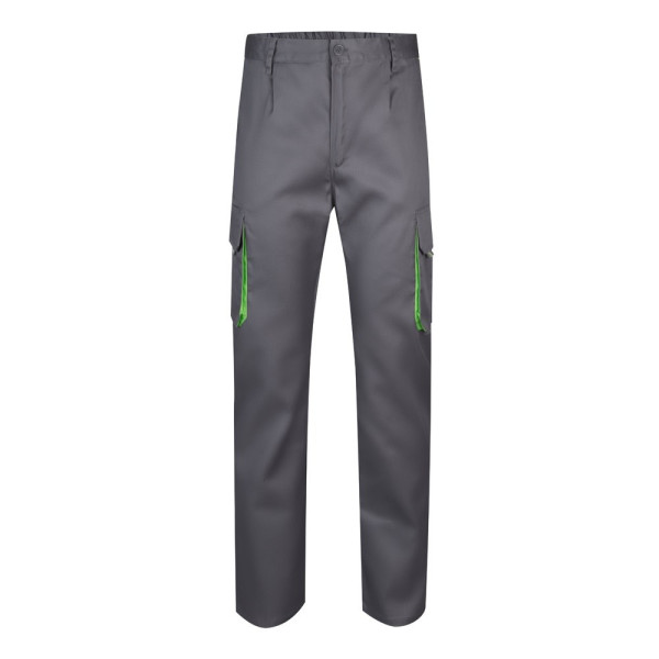 Zweifarbige Twill-Hose mit mehreren Taschen (200 g/m²), aus Baumwolle (35%) und Polyester (65%). Mit elastischem Bund und kontrastierenden Farben an den Zwickeln, Zugbändern und Nähten. Enthält sechs Taschen: (2 französische Taschen, 2 seitliche Zwickeltaschen und 2 Gesäßzwickeltaschen). Größe: 34, 36, 38, 40, 42, 44, 46, 48, 50, 52, 54, 56, 58, 60