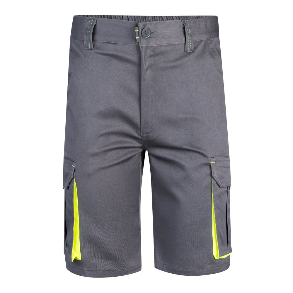 Zweifarbige Stretch-Bermudashorts mit mehreren Taschen (240 g/m²), aus Baumwolle (46%), EME (38%) und Polyester (16%). Mit elastischem Bund, farblich abgesetzten Zwickeln, Zuglasche und Nähten sowie Stoffverstärkung auf der Rückseite. Enthält sechs Taschen (2 französische Taschen, 2 seitliche Zwickeltaschen und 2 Gesäßzwickeltaschen). Größe: 34, 36, 38, 40, 42, 44, 46, 48, 50, 52, 54, 56, 58, 60