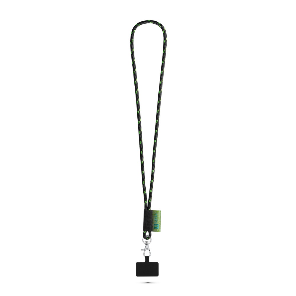 Lanyard aus Polyester. Erhältlich in 12 Standardfarben zur individuellen Gestaltung. Dieses lange Lanyard im Nautic-Design enthält folgendes Zubehör und Extras: schwarzes Gummiband, 43 x 22 mm Sublimationsetikett, Standard-Karabinerhaken, ø6 mm Sicherheitsverschluss und 65 x 41 mm Handyhalter. Hergestellt in Europa. Die Preise beinhalten die individuelle Sublimationsgestaltung des Etiketts. ø7 x 470 mm
