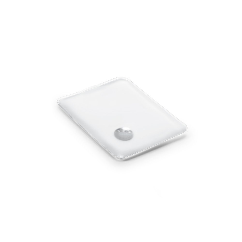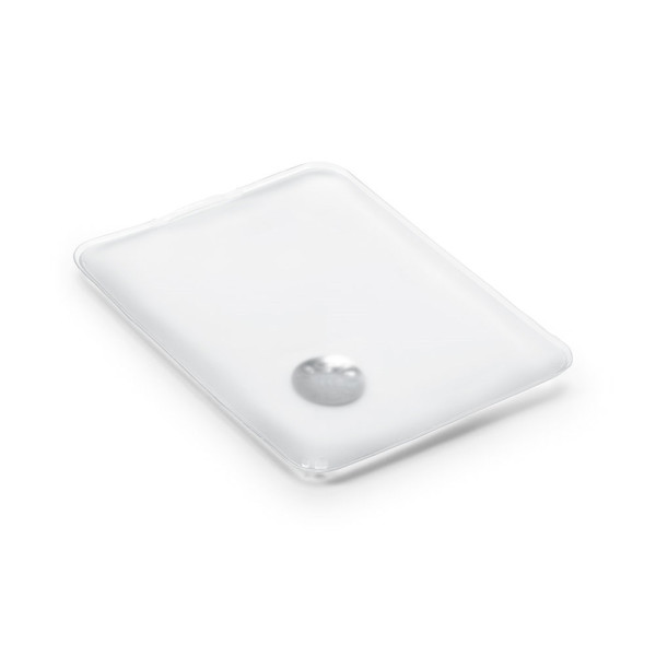 Wärmekissen aus PVC, dieser erzeugt Wärme beim Drücken des Metallplättchens. Dieser Artikel ist ein Werbeartikel. 88 x 110 mm