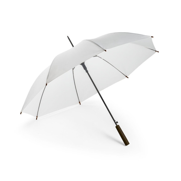 Regenschirm aus recyceltem Polyester (100% rPET) Pongé mit automatischer Öffnung, Metallstruktur und Holzgriff. ø1050 x 850 mm