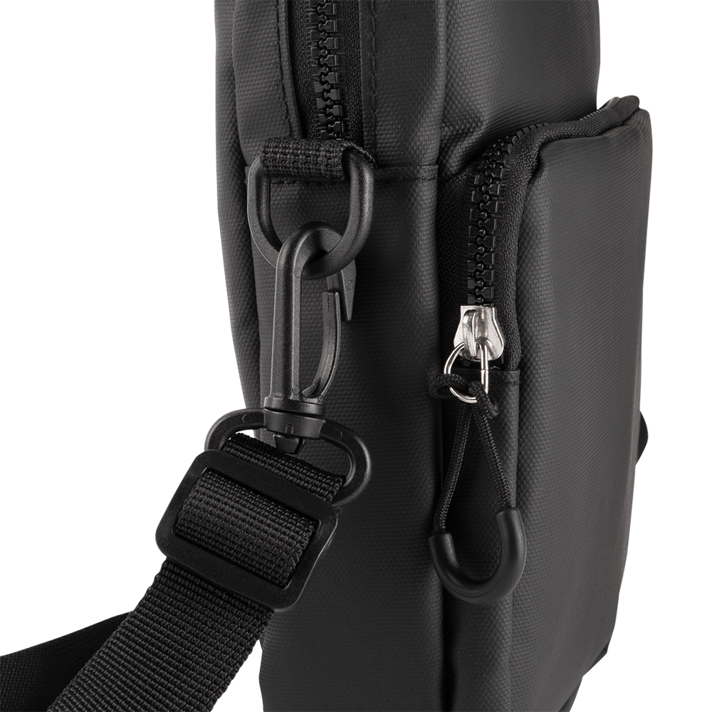 Diese Crossbag verfügt über ein Reißverschlusshauptfach und bietet innen ein Einsteckfach sowie vier elastische Schlaufen zur optimalen Organisation. Die Reißverschlussvortasche ist mit einem kleinen Kunststoffkarabiner ausgestattet. Das Thema Nachhaltigkeit ist durch rPET Innerlining auch abgedeckt. Klein aber fein!