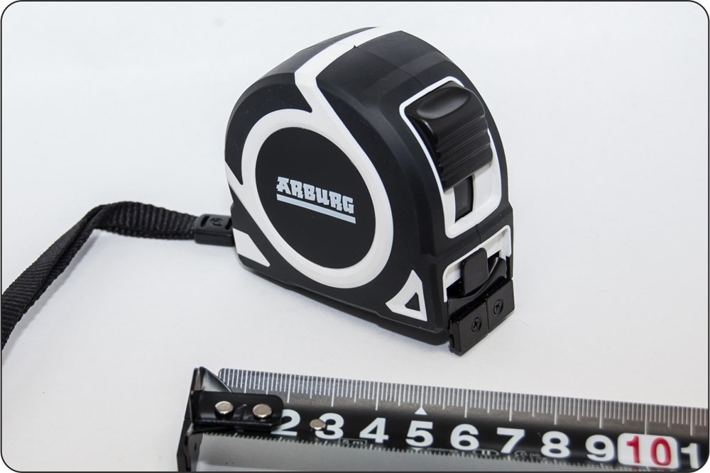 Top-Bandmaß sowie stärkster (bis 700g) und längster (5m) Magnetheber im Werbeartikelmarkt Europas.Schwarzes Stahlband als optisches Highlight mit extra großen Ziffern in weiß-rot zur optimalen Ablesung.Weiße Stahlbandrückseite für Höhenmessungen von Decken oder Regalen, ohne dass das Band abknickt. Dank hoher Stahlqualität Band stabil bis zu Auszugslänge von 2m.Hohe Magnetkraft des Bandanfangswinkels durch integrierten Neodym-Magneten. Dieser zieht Schrauben, Nägel und Metallwerkzeuge aus einer Höhe bzw. Tiefe von bis zu 5m an. Bandmaß 3m siehe Tabelle. Garantie* 3 Jahre.