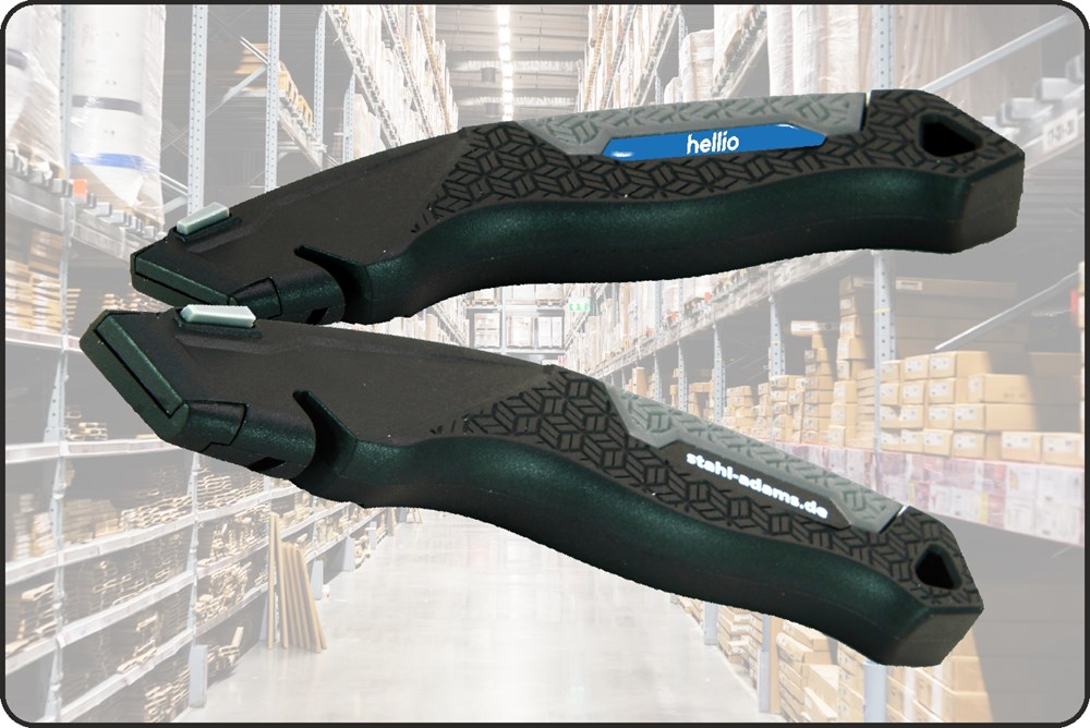 Moderner Design-Cutter mit 3-stufigem Klingenauszug für Rechts- und Linkshänder.Schlagfestes ABS-Gehäuse mit grauem Klappdeckel für Depot von 3 Ersatzklingen.Hochwertige, carbonhaltige SK2 Trapezklinge beidseitig nutzbar. Klingenwechsel leicht und schnell umsetzbar.Geschützter Schneidbereich für Kartonbänder und Kordeln.Öse für Lanyards oder Ketten.