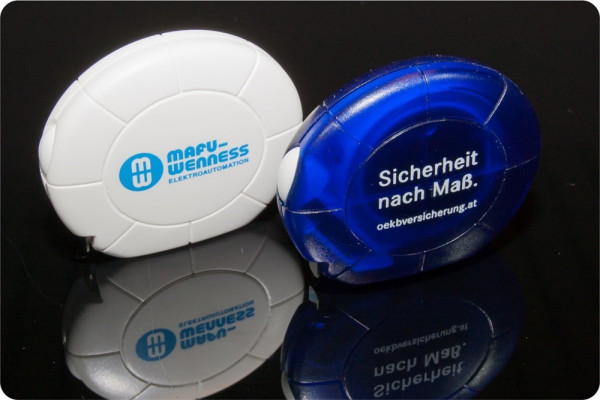 Bestseller Bandmaß in rundem Design mit in die Außenkontur integriertem Stopper. Handschmeichler. Hohe Werbewirkung Ihres Logos bei Aufstellen des Bandmasses auf gerader Standfläche. Ab 100 Stück sind viele Farbkombinationen aus Gehäuse und Stopper umsetzbar. Garantie 3 Jahre. Made in Germany