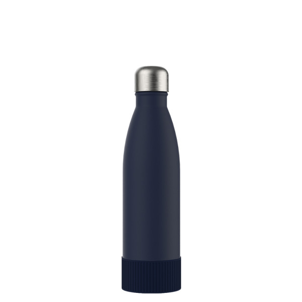 Für Heiß- oder Kaltgetränke, unsere doppelwandige Edelstahlflasche überzeugt durch trendiges und funktionales Design. Durch die Doppelwandigkeit mit Vakuum bleiben ihre Getränke lange kalt bzw. heiß. Die Trinkflasche kann mit navy-blauem, edlen mattschwarzem, weißem Powder Coating oder natürlich silberglänzend bestellt werden. 500 ml Fassungsvermögen stehen zur Verfügung. Setzen Sie ihr Logo stilvoll in Szene auf der Trend Trinkflasche schlechthin.
