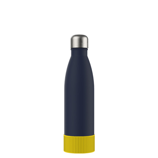 Für Heiß- oder Kaltgetränke, unsere doppelwandige Edelstahlflasche überzeugt durch trendiges und funktionales Design. Durch die Doppelwandigkeit mit Vakuum bleiben ihre Getränke lange kalt bzw. heiß. Die Trinkflasche kann mit navy-blauem, edlen mattschwarzem, weißem Powder Coating oder natürlich silberglänzend bestellt werden. 500 ml Fassungsvermögen stehen zur Verfügung. Setzen Sie ihr Logo stilvoll in Szene auf der Trend Trinkflasche schlechthin.
