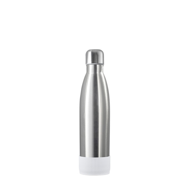 Für Heiß- oder Kaltgetränke, unsere doppelwandige Edelstahlflasche überzeugt durch trendiges und funktionales Design. Durch die Doppelwandigkeit mit Vakuum bleibt das Getränk lange kalt bzw. heiß. Die Trinkflasche kann mit edlem mattschwarzem, weißem Powder Coating oder natürlich silberglänzend bestellt werden. 500 ml Fassungsvermögen stehen zur Verfügung. Setzen Sie ihr Logo stilvoll in Szene auf der Trend Trinkflasche schlechthin.