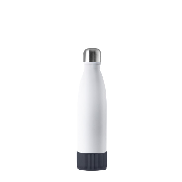 Für Heiß- oder Kaltgetränke, unsere doppelwandige Edelstahlflasche überzeugt durch trendiges und funktionales Design. Durch die Doppelwandigkeit mit Vakuum bleibt das Getränk lange kalt bzw. heiß. Die Trinkflasche kann mit edler mattschwarzer, weißer Pulverbeschichtung oder natürlich silberglänzend bestellt werden. 500 ml Fassungsvermögen stehen zur Verfügung. Setzen Sie ihr Logo stilvoll in Szene auf der Trend Trinkflasche schlechthin.