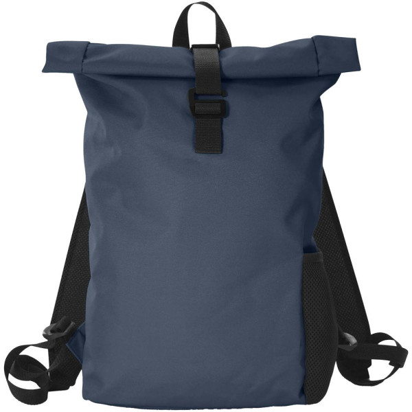 Der Vanguard Rolltop Rucksack aus 240 g/m² recyceltem Polyester (rPET) wurde entwickelt, um Ihren Alltag mit einfacher Handhabung und hoher Funktionalität zu unterstützen. Ein gepolstertes Laptopfach sorgt für optimalen Schutz, zusätzliche Polsterungen am Rücken und an der Unterseite erhöhen den Tragekomfort. Der schwarze Metallschnallenverschluss garantiert sicheres Verstauen, während der praktische Tragegriff oben und die verstellbaren, gepolsterten Schultergurte für eine individuelle Passform sorgen. Eine seitliche Netztasche ermöglicht schnellen Zugriff auf wichtige Utensilien, und ein Trolleyband auf der Rückseite erleichtert das Reisen. Größe 58 × 37 × 9,5 cm. Hergestellt in Europa.