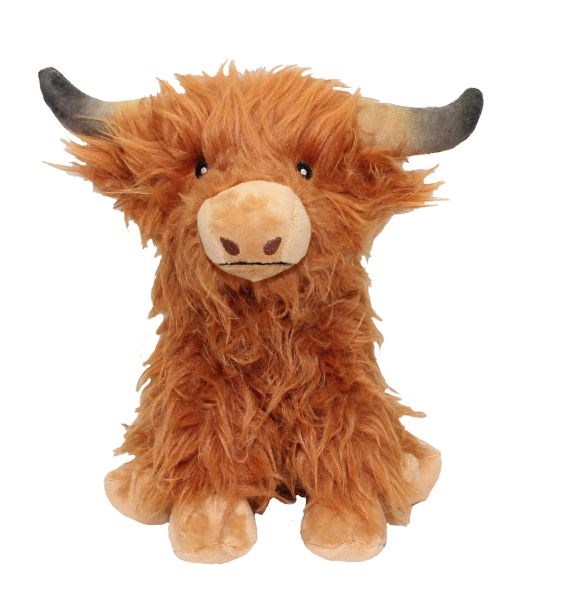 Der gutmütige Bulle beeindruckt mit zwei großen Hörnern und langem weichen Fell. Sein Gesicht ist gestickt und ist ideal für Kinder am dem 18. Lebensmonat. Maße ca. 18 x 15 x 13cm. VE 100/10 Stück.