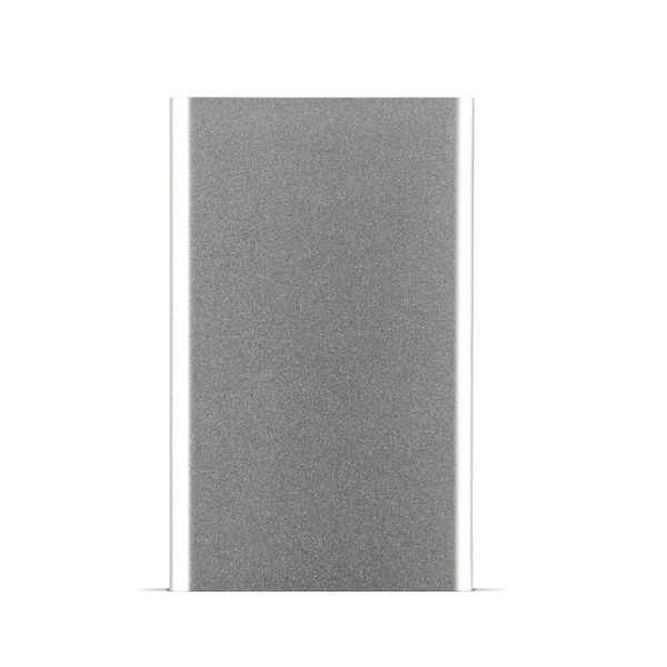 Aluminium Powerbank mit 4000mAh Kapazität in einem flachen Gehäuse. Einzeln verpackt in einer Geschenkbox, inkl. Ladekabel.
