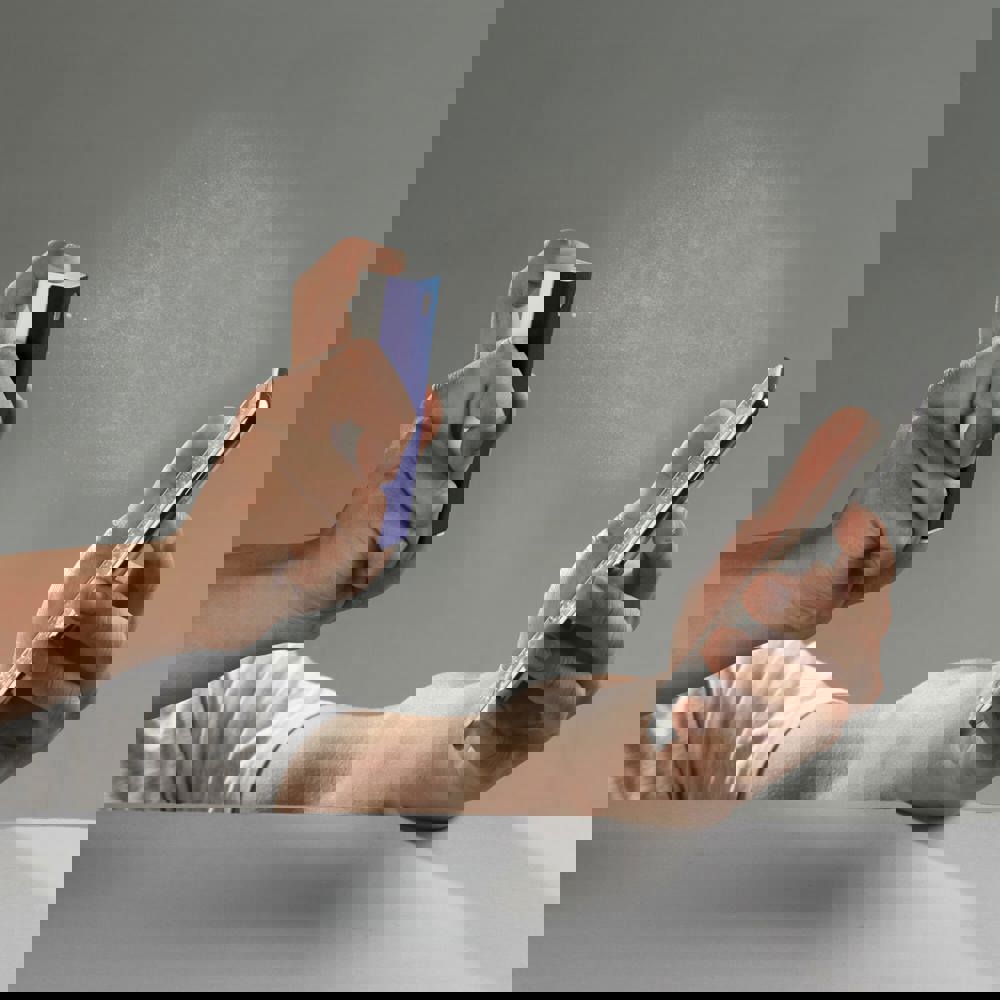 Reinigungsspray mit Mikrofasertuch in einem. Das Reinigungsspray kann zum Reinigen von Displays, Smartphones oder Brillen benutzt werden.