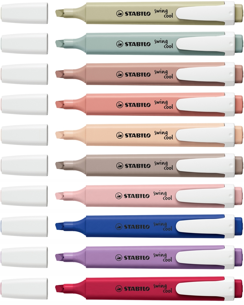 VON DER NATUR INSPIRIERT. Flacher Textmarker in Taschengröße mit praktischem Clip. 2 Strichstärken für verschiedene Arten des Markierens. Hohe Offenlagerfähigkeit. Erhältlich in 6 erdigen und 4 blumigen Trendfarben.