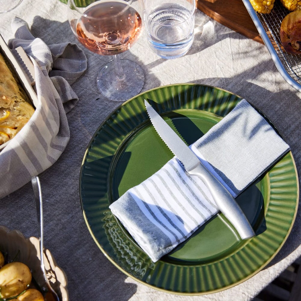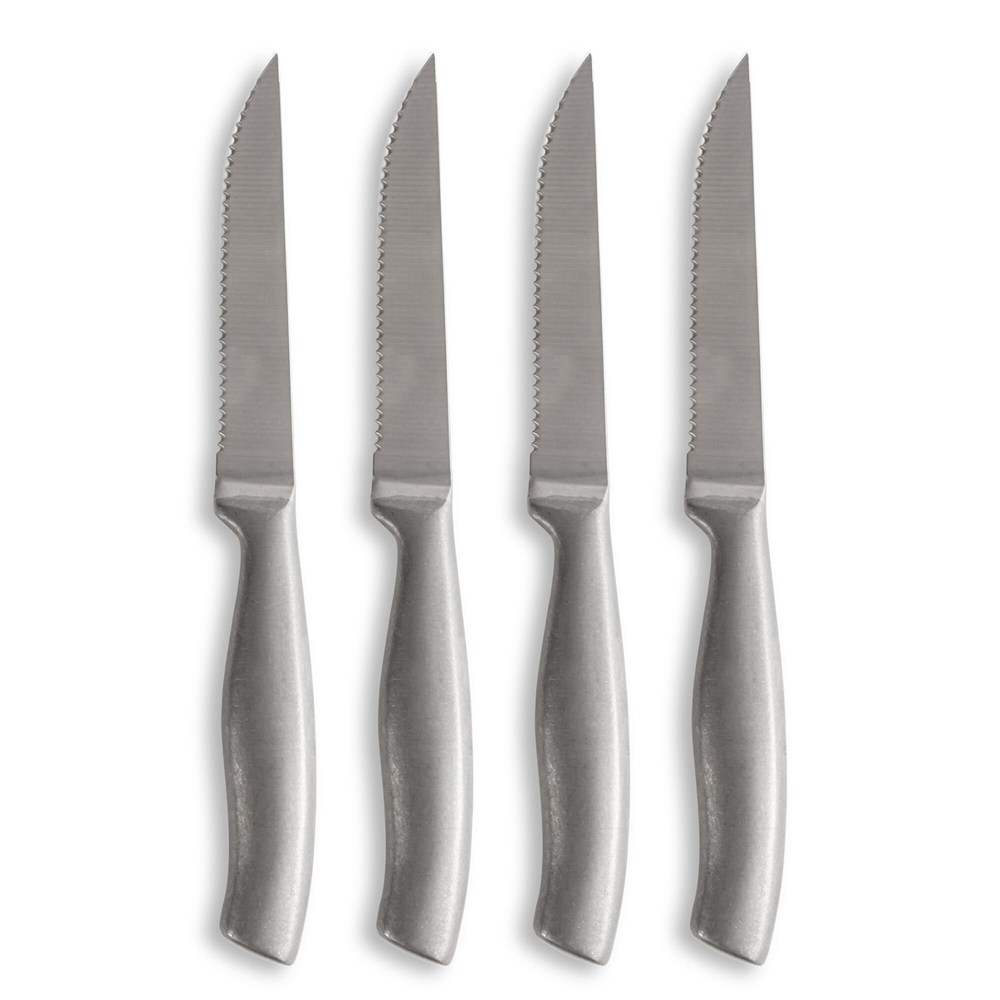 Jede Küche braucht Grillmesser der Meisterklasse, denn Essen schmeckt einfach besser, wenn es sich leicht in mittelgroße Stücke schneiden lässt. Anton Grillmesser sind stilvoll, griffig und haben eine scharfe Klinge. Hergestellt aus rostfreiem Stahl mit feinem Stonewashed-Finish. Kommt in einem attraktiven 4er-Pack.