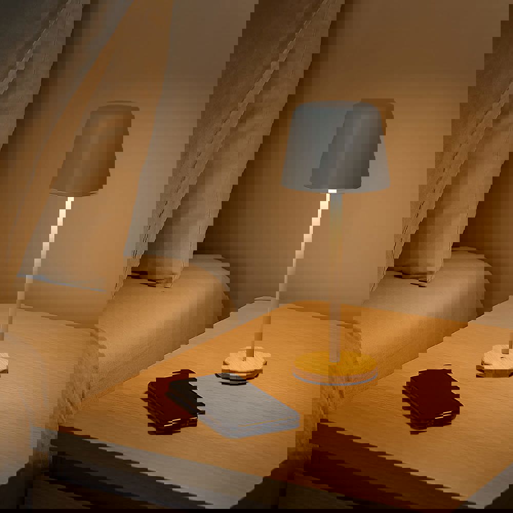 Die Solis Tischlampe ist vollständig dimmbar und bietet drei vielseitige Lichtmodi: kaltes Licht, warmes Licht und natürliches Licht. Mit einem integrierten 1.200-mAh-Akku genießen Sie 6 Stunden Beleuchtung. Das Aufladen erfolgt einfach und schnell über das mitgelieferte USB-C-Kabel, danach ist die Lampe in nur 3 Stunden wieder voll einsatzbereit.