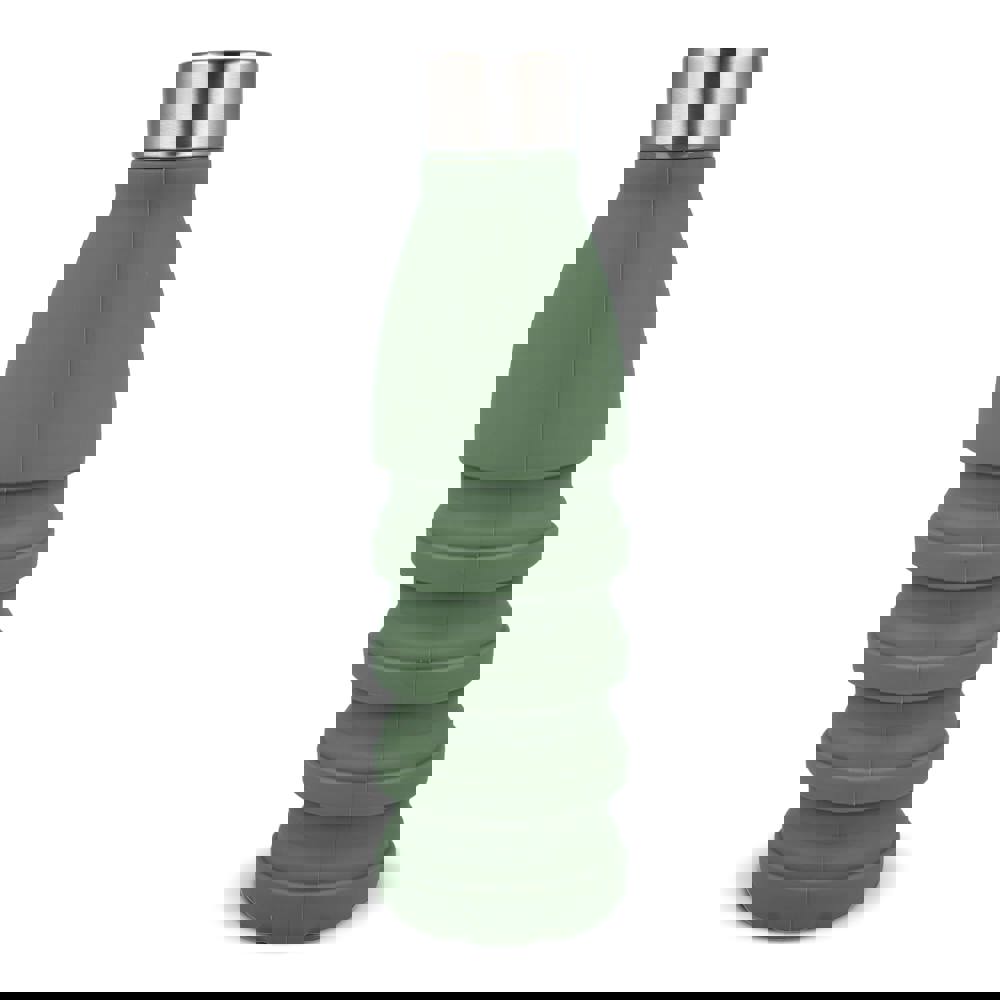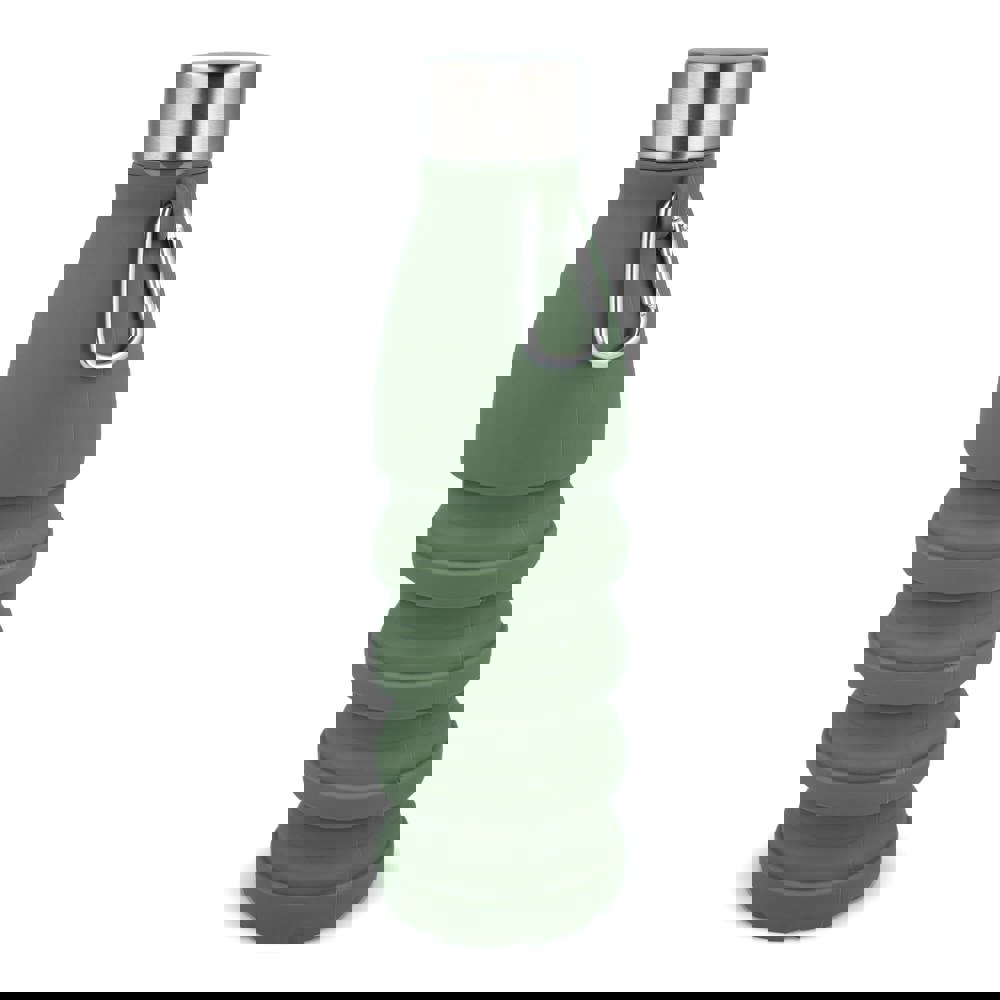 Faltbare Wasserflasche aus Silikon mit Karabinerhaken zum Befestigen an Ihrer Tasche. Sie fasst 550 ml Flüssigkeit.