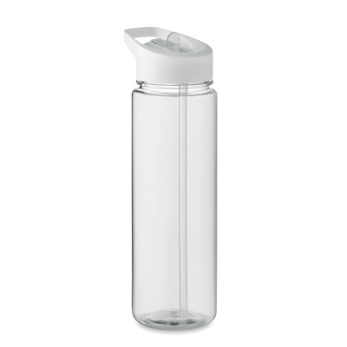 Trinkflasche aus RPET. Klappbares Mundstück aus PP mit Trinkhalm. Füllmenge: 650ml. Nicht für kohlensäurehaltige Getränke geeignet.