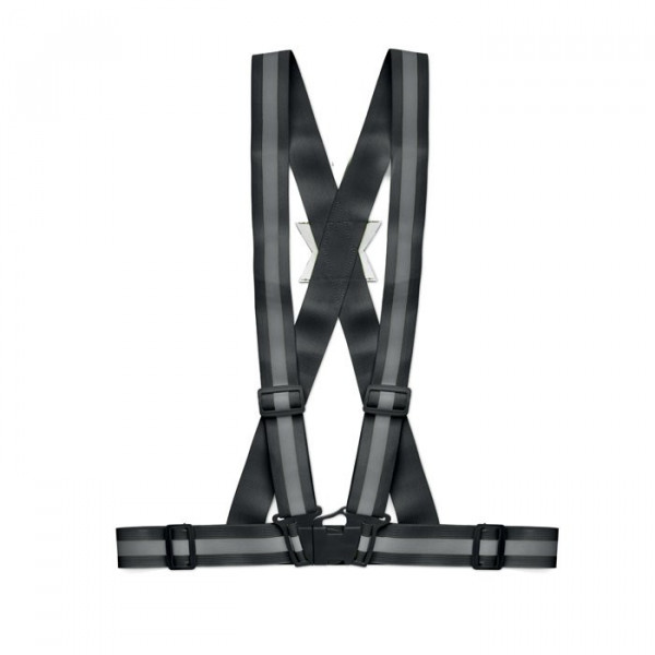 Verstellbare, reflektierende Gürtelweste. Silberne Reflektoren. Nur für Werbezwecke geeignet.