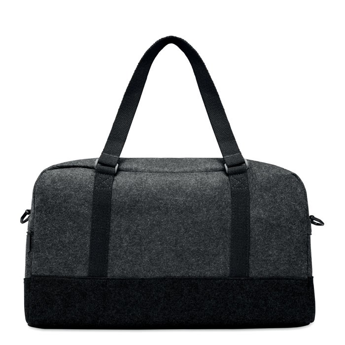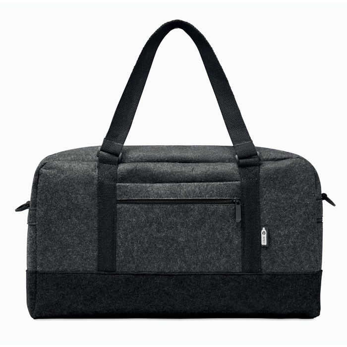 Weekender-Tasche aus RPET-Filz. Fronttasche mit Reißverschluss, Griffe aus Canvas und abnehmbarer, verstellbarer Schultergurt. Auch ideal als Sporttasche.