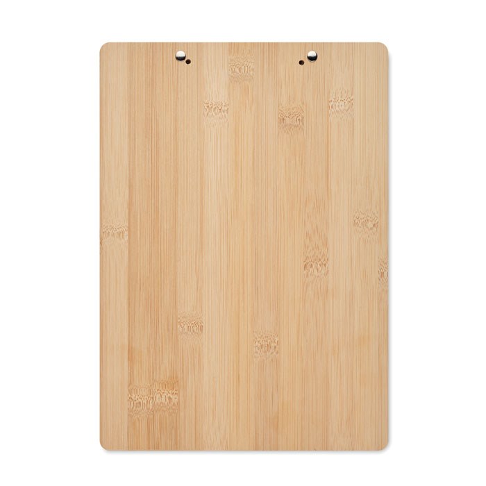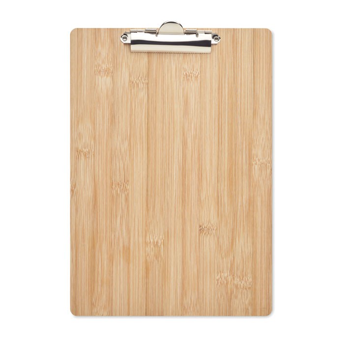 DIN A4 Klemmbrett aus Bambus. Mit diesem nützlichen Büroutensil behalten Sie den Überblick über Ihre Arbeit und haben alle Unterlagen beisammen. Das Bambusmaterial verleiht dem Klemmbrett ein natürliches Aussehen und macht es zu einer viel besseren Alternative als die üblichen Bretter aus Kunststoff. Da es sich bei Bambus um ein Naturprodukt handelt, kann es zu leichten Farb- und Größenabweichungen kommen, die das Endergebnis der Dekoration beeinflussen können. FSC®-certified | FSC 100%, N5.7, FSC-C213206