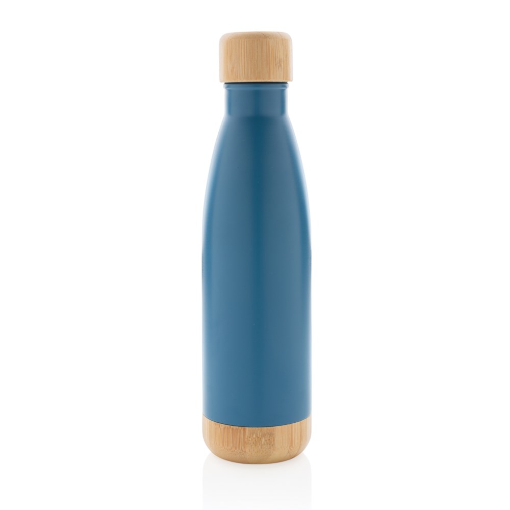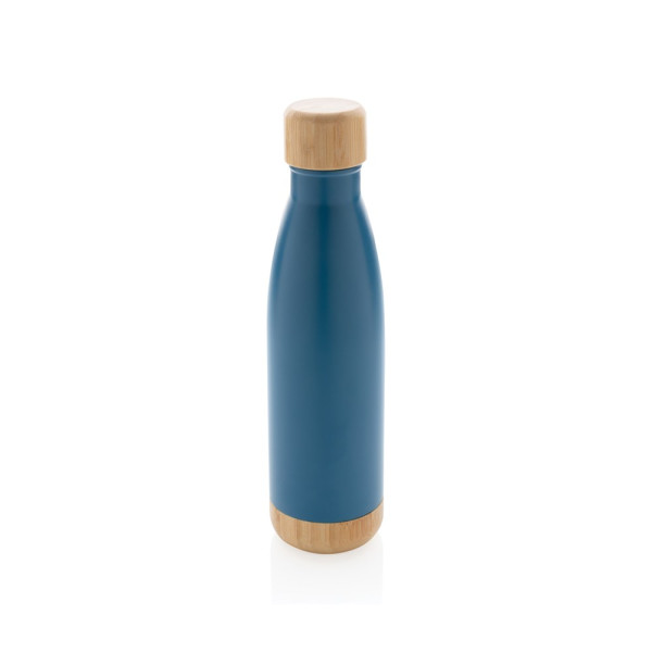 Vakuum Edelstahlfasche mit Deckel und Boden aus Bambus